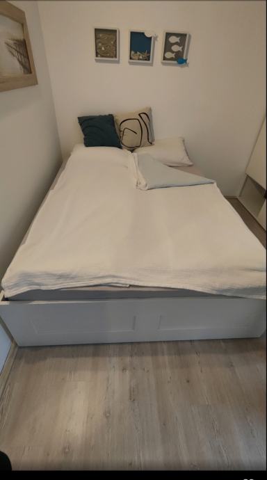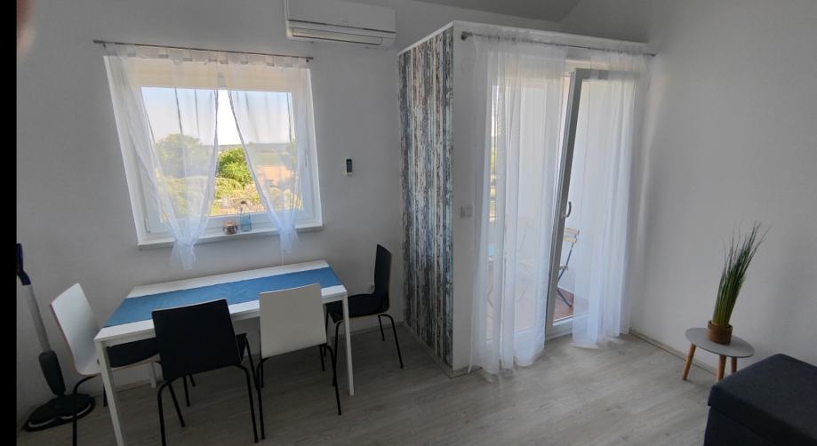 Nudi dnevno sobo (možnost dodatnega ležišča) z jedilnico in izhodom na teraso s pogledom na morje, kuhinjsko nišo s pomivalnim strojem, spalnico z zakonsko posteljo in pogradom z dodatno teraso, ter WC s kopalnico (tuš) in pralnim strojem. Oddaljenost od morja cca 300m. Mirno naselje.
