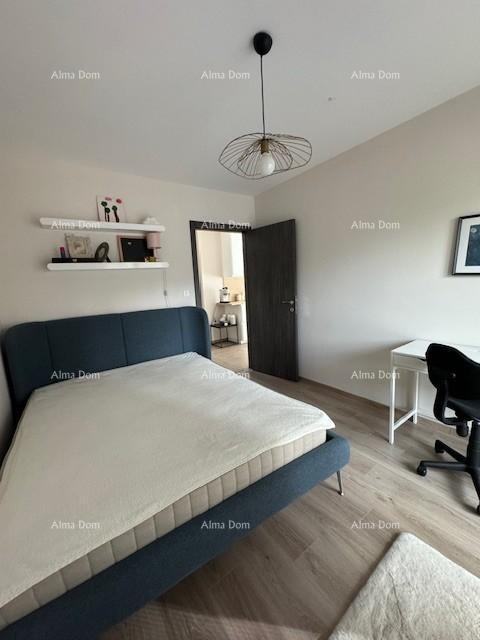 Apartma se nahaja v pritličju. Sestoji iz predsobe, kuhinje z jedilnico in dnevno sobo, 2 spalnici, garderobe iz spalnice, kopalnice in shrambe ter velike terase, delno pokrite in delno nepokrite. Stanovanje ima 66,65 m2. Stanovanju pripada garaža. Skupna neto zmanjšana površina s teraso in garažo 90,12 m2.