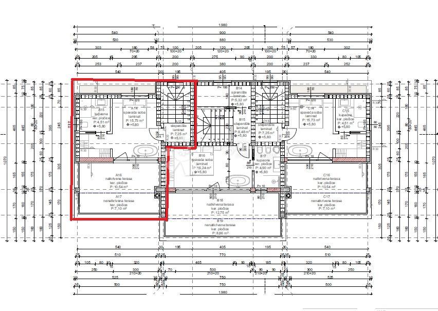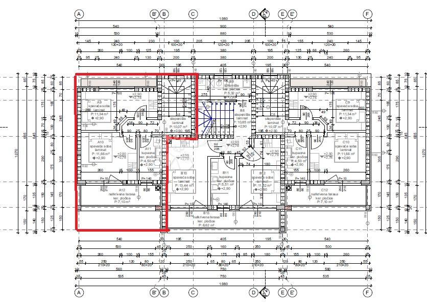 Sestavljena je iz pritličja, prvega in drugega nadstropja. V pritličju je vhodni prostor, dnevna soba, prostorna odprta dnevna soba, povezana s kuhinjo in jedilnico, ter izhod na čudovito teraso in dvorišče. Stopnice vodijo v prvo nadstropje, kjer sta 2 spalnici ter prostorna kopalnica in terasa. V drugem nadstropju je velika spalnica s kopalnico (en-suite) in prostorna terasa s čudovitim razgledom.