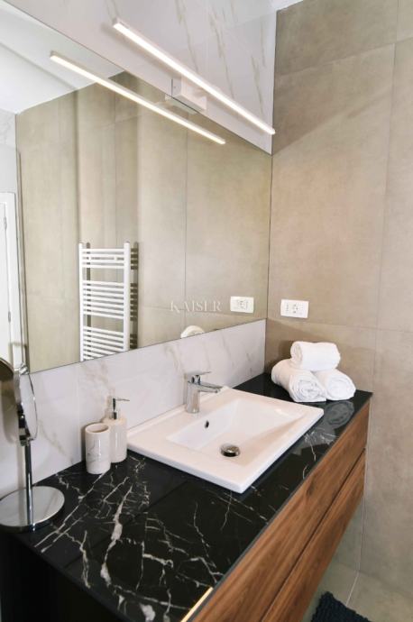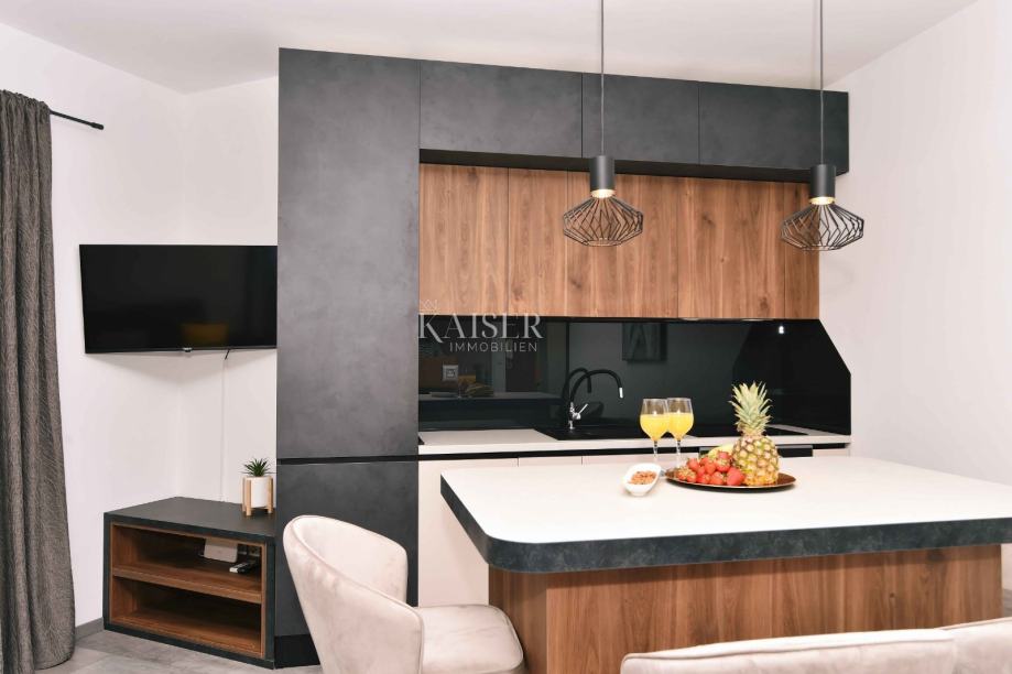 Kaiser Immobilien predstavlja čudovito enosobno stanovanje, ki se nahaja na območju Opatije, s skupno površino 55 m². Stanovanje obsega hodnik, kuhinjo z jedilnico in dnevno sobo, prostorno teraso, eno spalnico, kopalnico in balkon s čudovitim pogledom na morje. Stanovanju pripada eno parkirno mesto na vrtu stavbe, na voljo pa je tudi skupni bazen. Apartma je moderno in okusno opremljen ter popolnoma opremljen za udobno bivanje. Ogrevanje je izvedeno s klimatsko napravo, v kopalnici pa je talno ogrevanje. Nahaja se v prvem nadstropju manjšega stanovanjskega objekta, objekt je novogradnja, na izjemno atraktivni lokaciji v bližini vseh pomembnih vsebin. Oddaljenost od nepremičnine: München - 552km Ljubljana - 107km Reka - 13km Zagreb - 189km Letališče Rijeka - 38km Tržnica - 550m Sea/Lungomare - 650m Za vsa vprašanja se obrnite na agenta: Davor Piškulić davor@kaiser-immobilien.hr + 00 385 95 583 8240 WhatsApp, Viber