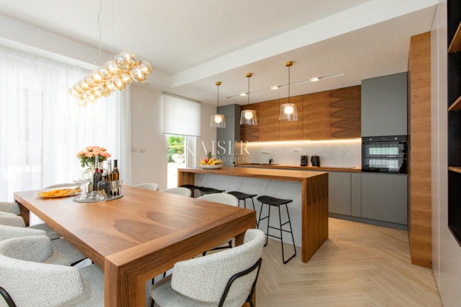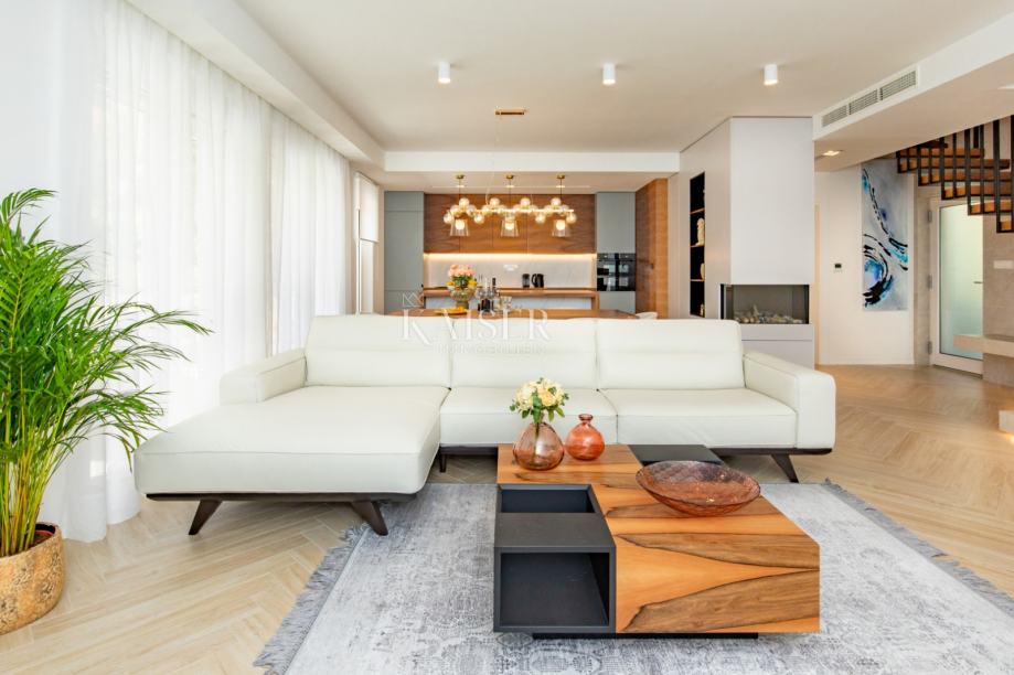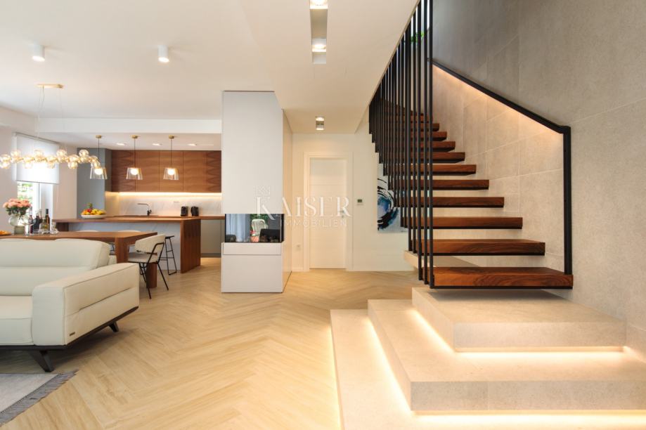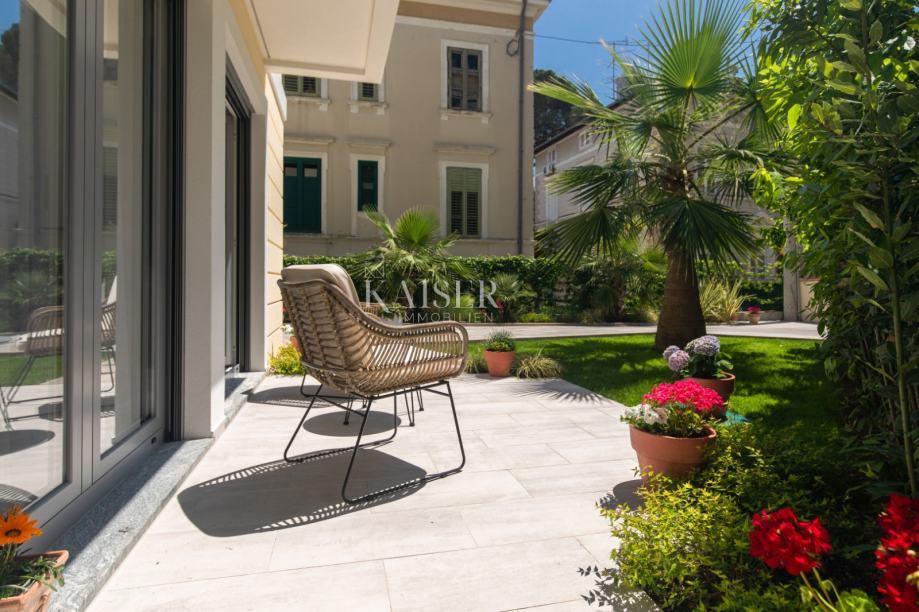 Kaiser Immobilien predstavlja luksuzno vilo na odlični lokaciji v samem centru Opatije. Ta izjemna vila v slikoviti Opatiji na novo opredeljuje umetnost obalnega življenja. Z bivalno površino 196 kvadratnih metrov in dodatnih 20 kvadratnih metrov zastekljenega zimskega vrta z zasebnim jacuzzijem ponuja neprimerljiv raj za sprostitev in uživanje. Vila nudi ekskluzivno oazo osvežitve, kjer se lahko kadar koli sprostite v stilu. V notranjosti vile vas bo pričakala notranjost, ki izžareva svetlobo in zračno eleganco. Uporaba lesa prinaša občutek topline in udobja ter ustvarja razkošno vzdušje. Vsak centimeter te vile odraža natančno pozornost do podrobnosti in vsak element je bil skrbno izbran, kar je dokaz zavezanosti k odličnosti. Ko boste raziskovali štiri spalnice, boste opazili očarljiv pridih – vsaka s svojo edinstveno barvno paleto, ki dodaja občutek živahnosti in igrivosti celotnemu interierju. Ta premišljena oblikovalska izbira daje vili svežino in jo naredi popolno vilo za tiste, ki iščejo mir in edinstvenost. Ne glede na to, ali se sproščate v razkošni dnevni sobi, uživate v pomirjujočih vodah jacuzzija v zimskem vrtu ali preprosto uživate v obalnem vetriču s terase, je ta vila popolna mešanica modernega in tradicionalnega.