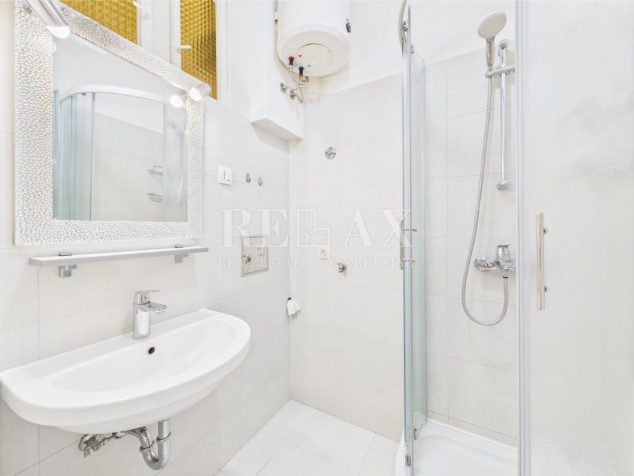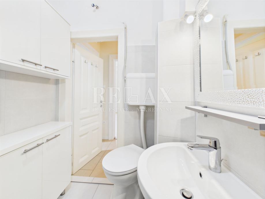 Stanovanje je delno opremljeno, s kuhinjo in sanitarijami, vgrajeni sta tudi dve klimatski napravi. Obstaja možnost uporabe enega parkirnega mesta, kar je posebej dragoceno v središču Opatije.