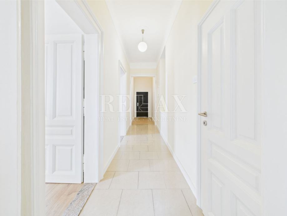 Stanovanje je obrnjeno proti severozahodu in je bogato z naravno svetlobo zahvaljujoč velikim oknom in visokim stropom, kar ustvarja prijetno vzdušje skozi ves dan. Iz posameznih prostorov se odpira delni pogled na morje in značilne mestne vedute Opatije.