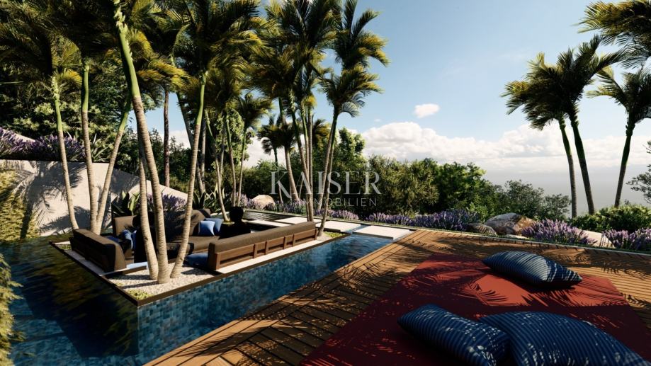 Zemljišče je v celoti očiščeno, zgrajena je betonska dovozna cesta, priklopljena elektrika in voda, pričela pa se je gradnja izjemno velike in luksuzne vile z več kot 800 m2 bivalne površine z dvema zunanjima in enim notranjim bazenom. Projekt in notranja oprema sta delo priznanih arhitektov, ki so se posvetili tudi najmanjši podrobnosti.