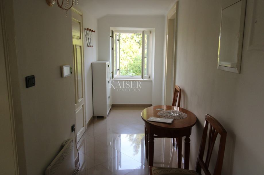 Ta nepremičnina se nahaja v majhni ribiški vasici Volosko v bližini Opatije, le približno 100 metrov od morja in čudovitih plaž, kot so Črnikovica, Puntica in druge v tem delu, obdana z velikim vrtom v zelenju in vrtovi za uporabo samo z. trije lastniki v hiši. Dostop do samega objekta je oviran z vrtnimi železnimi vrati, tako da ima sam objekt in njegova okolica popolno zasebnost. Stavba, torej prebivalci Opatije in Voloskega imajo pravico do plačljivega prednostnega parkiranja, v neposredni bližini pa je parkirna cona. Stanovanje obsega hodnik, kuhinjo z jedilnico, dnevno sobo z izhodom na teraso iz katere se lepo vidi zelenje in morje ter kopalnico z WC-jem, vse na površini 59 m2. .vsakemu stanovanju na vrtu pripada del skupnega vrta. Do morja in prvih plaž je le nekaj minut hoje. Ta izjemna lokacija nam ponuja popoln mir in sprostitev, in tako blizu vseh dobrin, ki so potrebne za življenje in čudovite opatijske promenade Lungo More ter samih plaž. Lokacija je približno 30 minut vožnje od letališča Krk, Pulj približno 1 uro 40 minut, Zagreb približno 1 uro 30 minut, Ljubljana približno 1 uro 50 minut, Trst približno 1 uro 20 minut, Berlin približno 10 ur, Dunaj približno 4 ure, 30 minut. Za vse ostale informacije pokličite vašega agenta na +385916133776 Agencijska provizija je 3%+DDV