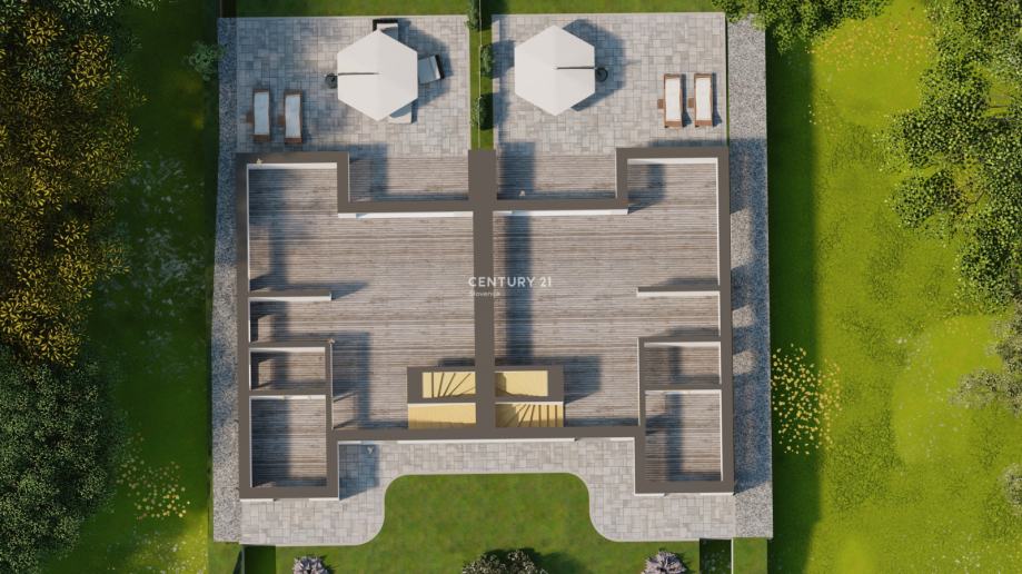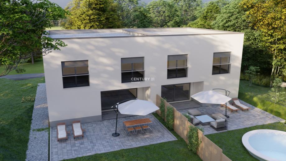 Objekt bo zgrajen ter pokrit , ter bo vseboval (zunanja vrata ,okna ter police, zunanja fasada , vse inštalacije za elektriko, vodo, optiko in ogrevanje, ometi, estrihi, talno gretje, sanitarna oprema, toplotna črpalka Panasonic ...). V tej fazi bo urejena tudi okolica okoli enote omenjenega dvojčka.