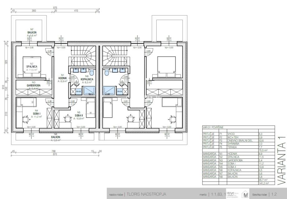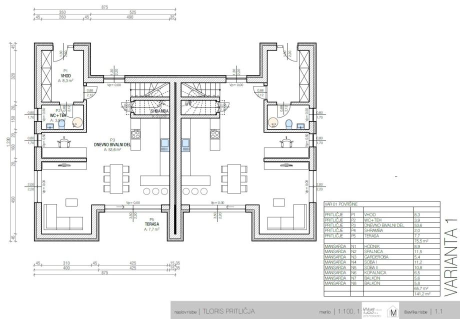 Enota bo imela ca. 141,20 m2 bruto površine (od tega je 120,10 m2 notranje neto površine ) in bo obsegala prritličje in zgornji del.