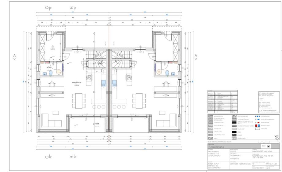 Novozgrajeni objekt bo izveden kot stanovanjska enota. Temelj posamezne enote predstavlja AB temeljna plošča, nosilni zidovi iz opečnih zidakov in AB vezi. Medetažma plošča se izvede kot AB plošča. Prav tako se iz betona izvede strešna konstrukcija in stopnice. Vsaka enota ima pravokotno obliko tlorisa z izzidkom, ki predstavlja vhod v enoto. Streha je ravna naklona 2 stopinji, kritina je strešna folija in prodec. Fasada bo izvedena z gladkim ometom in opleskana v svetlih tonih.