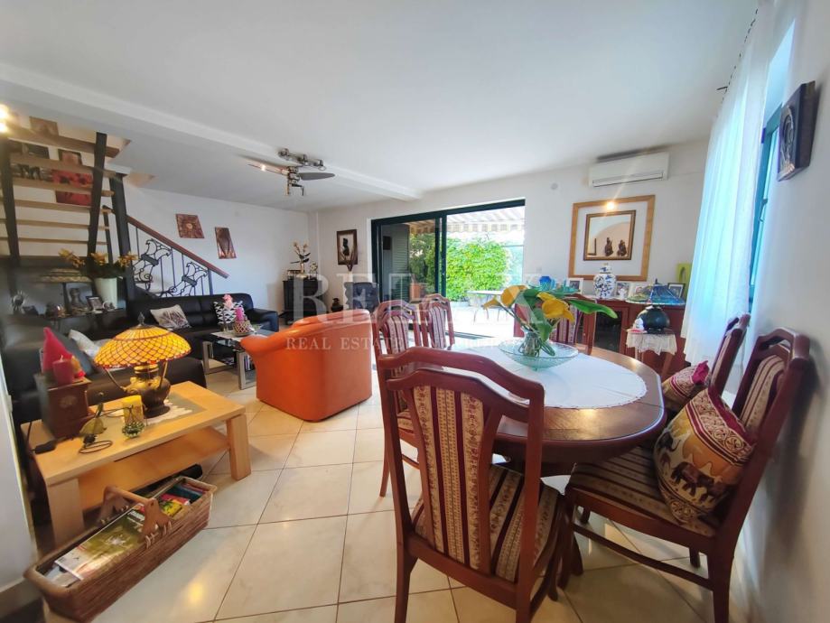 V pritličju je prostorna dnevna soba s kuhinjo in jedilnico ter manjši WC. Iz dnevnega prostora je izhod na lepo urejen vrt v izmeri 100 m² – popoln za sprostitev na prostem. V nadstropju sta dve spalnici in kopalnica, z izhodom na veliko teraso v velikosti 30 m², s katere se ponuja pogled na morje.