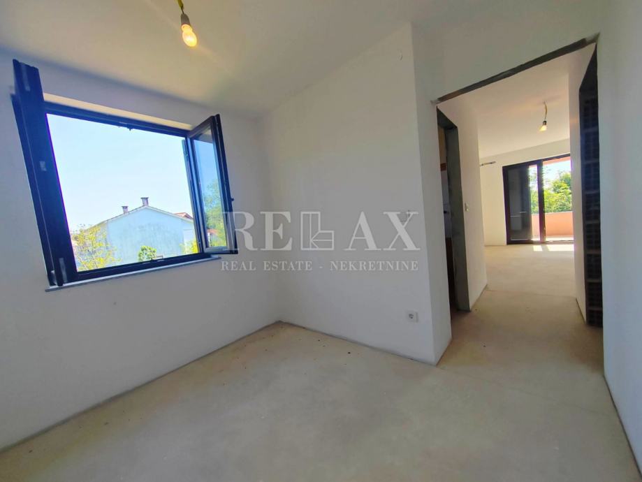 Na mirni lokaciji v zelenem pasu kraja Dobrinj na otoku Krku stoji dvojček v visoki fazi gradbene surovosti, idealen za tiste, ki iščejo zasebnost, mir in stik z naravo, obenem pa želijo biti blizu morja in turistične ponudbe Malinske.