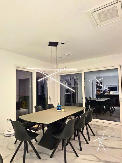 Na atraktivni lokaciji v naselju Muraj na otoku Krku se nahaja ta luksuzno opremljena vila s površino 219,71 m², idealna za tiste, ki iščejo kakovostno nepremičnino, le 1 km od plaže Dunat, 2 km od marine Punat in 3 km od središča Punata.
