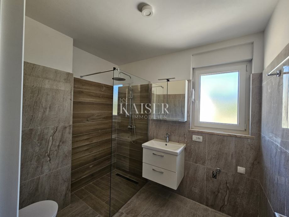 Kaiser immobilien posreduje pri prodaji apartmajev v novogradnji, Njivice, otok Krk. Apartma se nahaja v prvem nadstropju dvonadstropne stavbe, ki se nahaja na robu zelenega pasu. Apartma velikosti 80 m2 je sestavljen iz dveh spalnic, kopalnice in stranišča za goste ter odprtega koncepta, ki vključuje kuhinjo, jedilnico in dnevno sobo z neposrednim dostopom do pokrite terase s čudovitim razgledom na morje. Ena spalnica ima lasten izhod na balkon s pogledom na zelenje, ki obdaja stavbo. Visokokakovostno stavbno pohištvo s stop-sole steklom, visokokakovostna keramika, talno ogrevanje, vsi prostori klimatizirani. Apartmaju pripada tudi eno parkirno mesto. Predvideni rok dokončanja je do konca leta 2025. ID KODA 105-302 Provizija agencije za kupca znaša 3% + DDV in se plača v primeru nakupa nepremičnine, ob sklenitvi prvega pravnega dejanja.