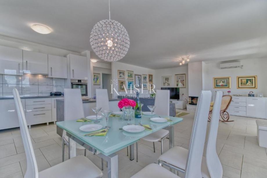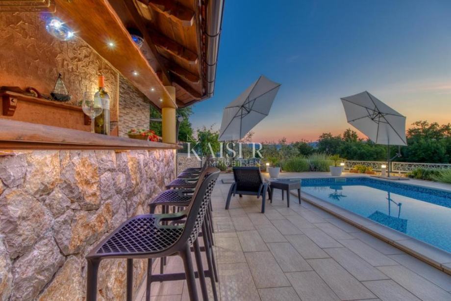 Omišalj je očarljiva obmorska vasica na severozahodnem delu otoka Krka, znana po bogati zgodovini, ozkih kamnitih ulicah in očarljivem razgledu na Kvarnerski zaliv. Kot eno najstarejših naselij na otoku Omišalj ponuja edinstveno mešanico tradicije, naravnih lepot in sodobne infrastrukture. Zaradi bližine Krškega mostu, letališča in avtoceste je Omišalj izjemno dostopen in je idealen kraj za mirno življenje ali počitnice v pristnem mediteranskem okolju. Kaiser Immobilien predstavlja to edinstveno hišo, ki se nahaja na mirni in posebni lokaciji, s čudovitim razgledom na morje in zasebnim bazenom. Ta izjemna nepremičnina je sestavljena iz pritličja in zgornjega nadstropja, skrbno zasnovanih za maksimalno udobje, funkcionalnost in zasebnost. Pritličje hiše je zasnovano kot družabni prostor - vhod vodi v pristno konobo, opremljeno z veliko mizo, barom in popolnoma funkcionalno kuhinjo. V tem nadstropju sta tudi dve spalnici, idealni za goste, pa tudi kopalnica s tušem in straniščem ter ločena pralnica. V pritličju je tudi prostorna garaža, ki ščiti vozilo pred vremenskimi vplivi in ponuja dodaten prostor za kolesa in shranjevanje. Prvo nadstropje hiše ima svoj, ločen vhod, kar dodatno zagotavlja zasebnost. Vhod vodi v prostoren in svetel bivalni prostor odprtega koncepta s popolnoma opremljeno kuhinjo (pomivalni stroj, pečica, električni štedilnik, aparat za kavo itd.), jedilnico in dnevno sobo s funkcionalnim kaminom, ki v zimskih mesecih zagotavlja posebno vzdušje. Dnevna soba se odpira na veliko pokrito teraso z neoviranim pogledom na morje. V prvem nadstropju sta še dve udobni spalnici in dve moderni kopalnici. Hiša je opremljena s centralnim ogrevanjem z radiatorji, tremi klimatskimi napravami in kaminom, kar zagotavlja prijetno temperaturo skozi vse leto. Poseben poudarek si zasluži urejen in popolnoma ograjen vrt, ki zagotavlja občutek varnosti in zasebnosti. Na dvorišču se nahaja bazen dimenzij 6,70 m x 4 m, globine 1,5 m, s prostornim prostorom za sončenje, zunanjim tušem in popolnoma opremljeno letno kuhinjo z vgrajenim žarom, hladilnikom, pomivalnim koritom in zunanjimi zvočniki, idealno za poletna druženja in družinske trenutke. Hiša je bila kakovostno zgrajena, z rednim vzdrževanjem in manjšimi prenovami skozi leta. Fasada ima 16 cm toplotno izolacijo, PVC stavbno pohištvo, keramične ploščice 60x30 cm in laminat v sobah. Vsa okna so opremljena z roletami, vhodna vrata na dvorišče pa so električna. Dostop do hiše je tlakovan in vodi do garaže in glavnega vhoda. Poleg kakovosti gradnje je zelo pomembna tudi sama lokacija. Hiša se nahaja na koncu mirne ulice, brez prometa, z lastnim dovozom in razsvetljavo. Hkrati je dovolj blizu vseh pomembnih ugodnosti – trgovin, plaž in cest –, ki so dostopne v 5 do 10 minutah hoje. Bližina letališča Rijeka, mostu Krč in številnih plaž naredi to hišo odlično priložnost za družinsko življenje, hkrati pa tudi izjemno donosno naložbo za turistični najem, kar potrjujejo visoke ocene, ki jih hiša že beleži kot turistični objekt. Bližina ustreznih storitev: Omišalj, center - 600 m Restavracija - 550 m Bar na plaži - 800 m Lidl - 800 m Pekarna - 700 m Morje/plaža - 800 m Lekarna - 1 km Avtobusna postaja - 1 km Malinska - 11 km Mesto Krk - 22 km Reka - 25 km Letališče - 2,5 km Krški most - 3,5 km Oddaljenost od večjih mest: Omišalj - Ljubljana: 139 km Omišalj - Dunaj: 512 km Omišalj - Budimpešta: 501 km Omišalj - Praga: 837 km Omišalj - München: 540 km Omišalj - Zagreb: 162 km Provizija agencije za kupca znaša 3% + DDV in se plača v primeru nakupa nepremičnine, ob sklenitvi prvega pravnega dejanja. Zainteresirani kupci si lahko ogledajo nepremičnino šele po predhodnem podpisu pogodbe o posredovanju v prometu z nepremičninami. ID-KODA: 127-159 Če si želite nepremičnino ogledati osebno, se obrnite na: Jennifer Hofmann E-pošta: jennifer@kaiser-immobilien.hr Tel.: +385-91-515-0887 http://kaiser-immobilien.hr/