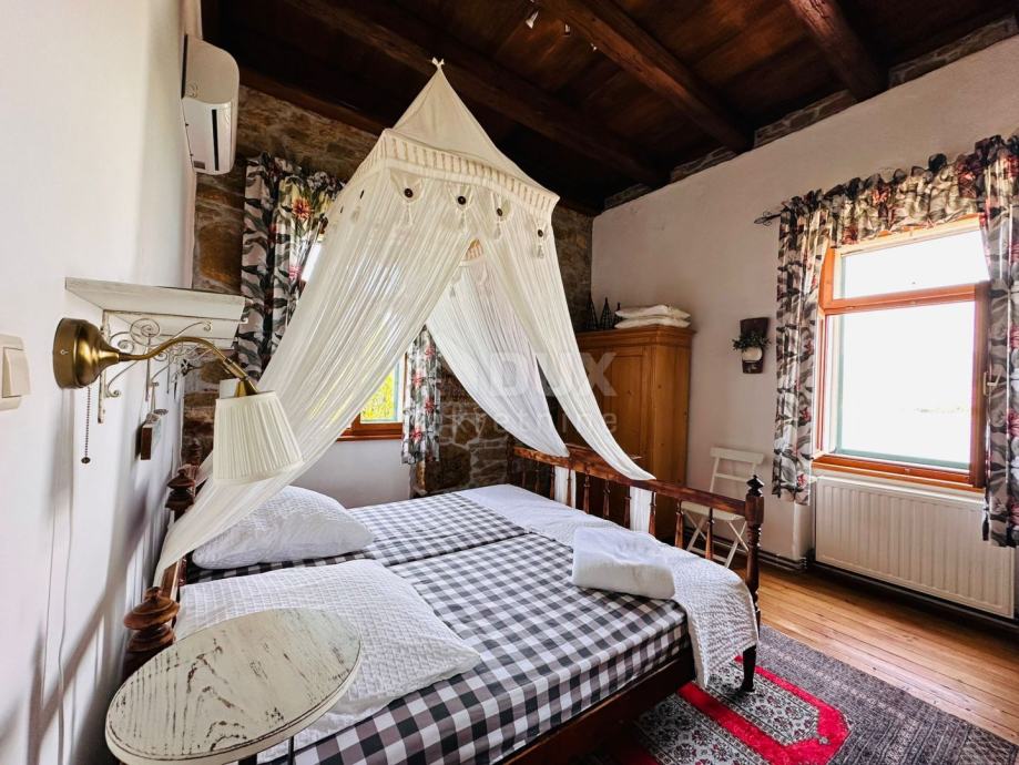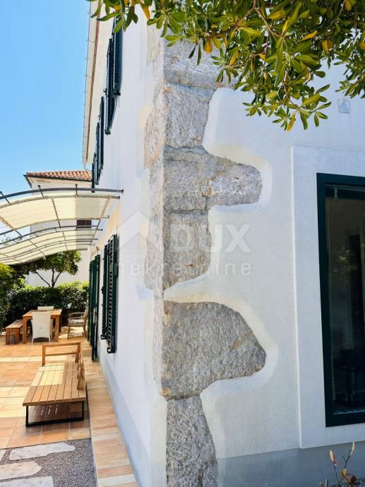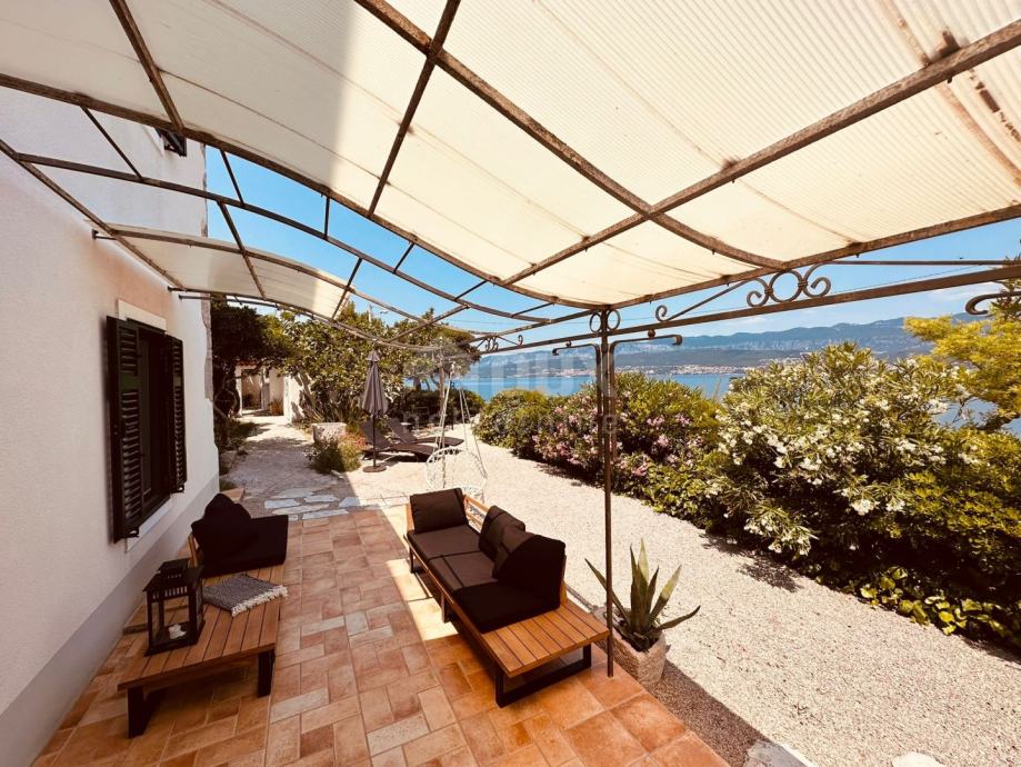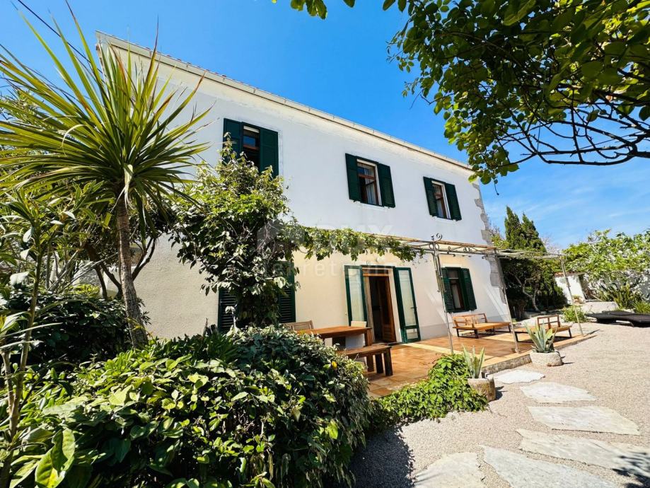 OTOK KRK, ŠILO - Kamnita vila 30 metrov od morja Na otoku Krku, v Šilu, le 30 metrov od morja, se prodaja kamnita hiša ob morju na parceli 406 m2. Bivalna površina te rustikalno očarljive vile je 140 m2, v dveh etažah. V pritličju je dnevna soba, kuhinja, jedilnica in velika kopalnica z izhodom na teraso. Lepo notranje stopnišče vodi v zgornje nadstropje, kjer so tri spalnice s pogledom na morje in kopalnica. Obnovljena hiša ima zunanje PVC zeleno mizarstvo s komarniki, centralno ogrevanje, klima. Na vrtu je pokrita terasa, manjša terasa z žarom in prostorom za sončenje, vse pa je obdano z zelenjem in sredozemskim rastlinjem. Pod prostorno teraso se nahaja garaža velikosti 52 m2. Prostoren vrt, s podeželskim ambientom, poln sredozemskih dreves in rastlin, z veliko pokrito teraso, manjšo teraso z žarom, obdano z zelenjem in dvema prostoroma za sončenje. Garaža ima površino 52 m2 in ima dostop z asfaltne ceste. Nepremičnina prva vrsta do morja, otok Krk, možnost za osebno uživanje ali turistični najem. *** Cenjene stranke, agencijska provizija se obračunava v skladu s Splošnimi pogoji poslovanja www.dux-nekretnine.hr/opci-uvjeti-poslovanja