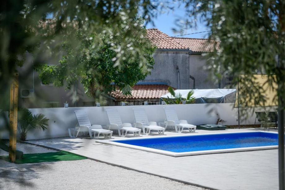 Hiša 256 m2 obsega 5 spalnic, 5 kopalnic, 3 kuhinje, 3 dnevne sobe in je primerna za bivanje večje družine ali za turizem (ali kombinirano).