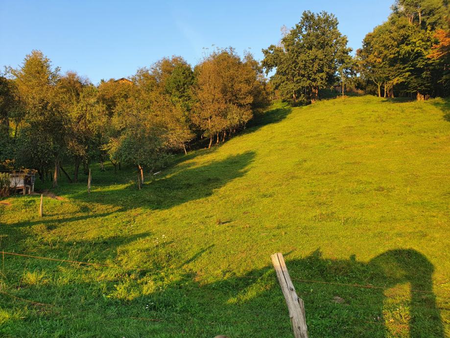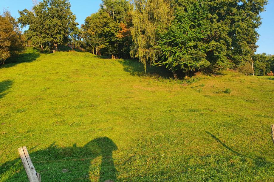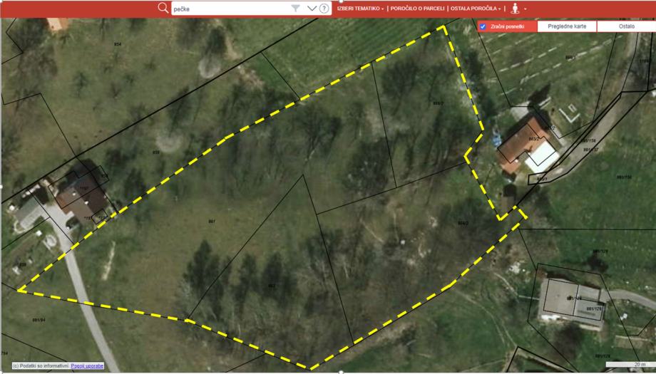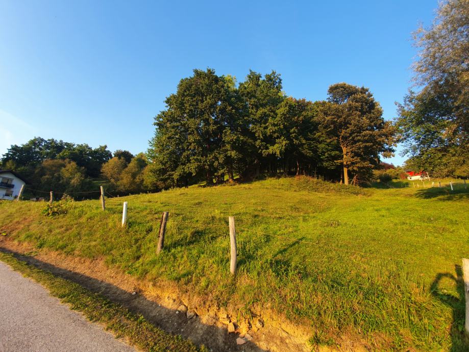 Lepa, osončena, zazidljiva parcela v velikosti 1.018 m2 in 6.472 m2 kmetijsko zemljišče (v naravi travnik, pašnik, gozd in kar nekaj dreves orehov, jabolk, sliv) na idilični lokaciji ob robu naselja Pečke pri Makolah.