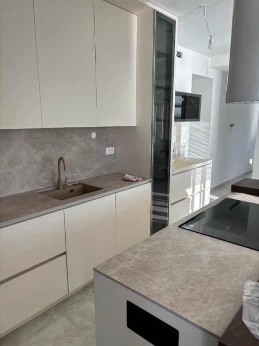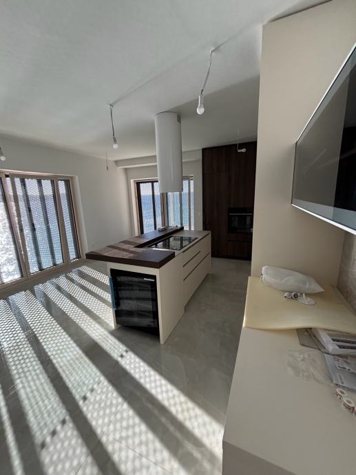 Vrhunsko opremljen penthouse v novogradnji, uporabne površine 167 m2...terasa je že pripravljena za jacuzzi in žar, talno gretje v celotnem stanovanju, notranji kamin, dvigalo iz garaže, direkten dostop do plaže...