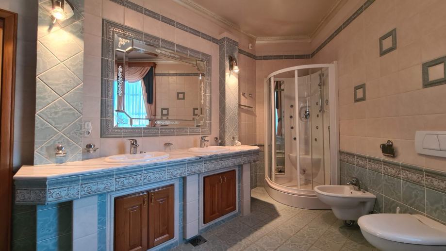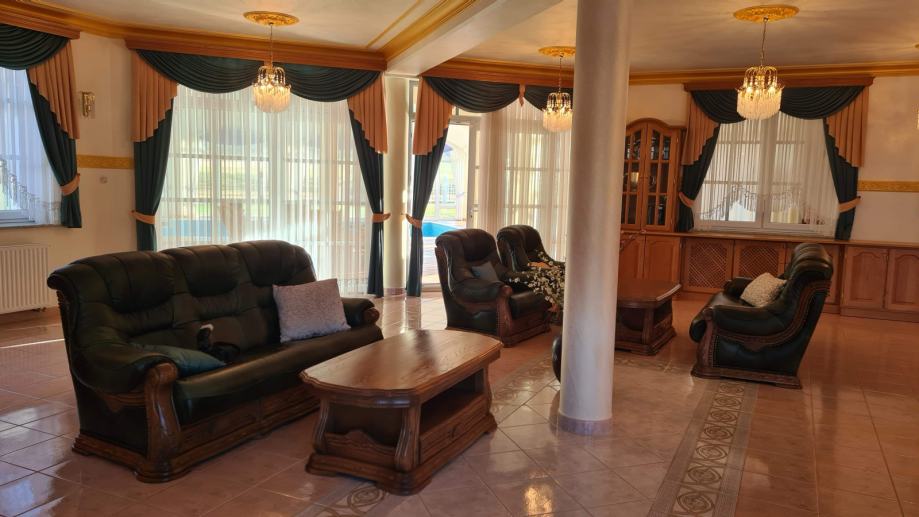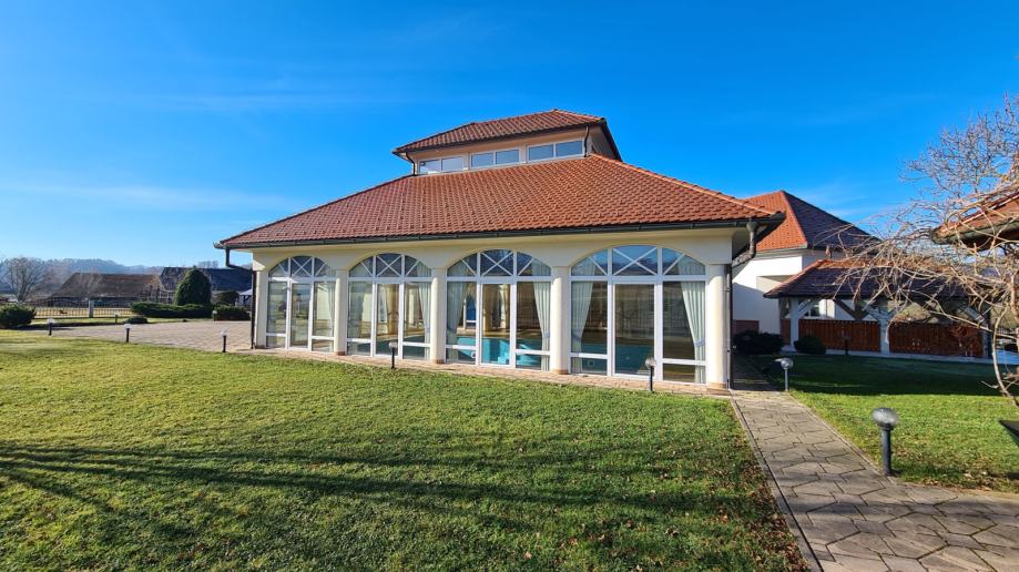 Objekt je bil zgrajen l.2002 in je skupne površine 840 m2, torej bivalne površine skupaj z bazenskim in spa delom. V treh etažah vam ponuja veliko udobja za vašo družino in goste. Okolica je urejena, tlakovana in zasajena z okrasno zasaditvijo. Zemljišče je velkosti 3.396m2.
