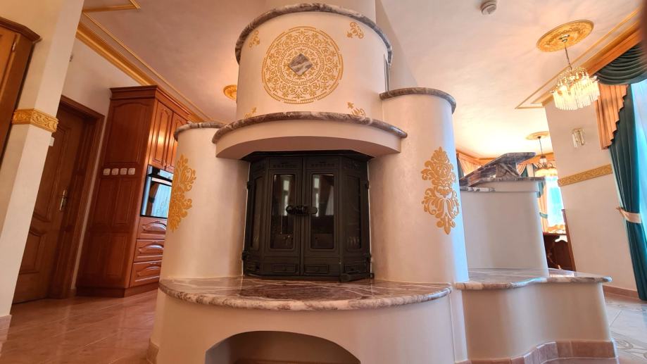 Vilo krasijo drobni štukaturni stenski elementi in unikaten oplesk v sobah.