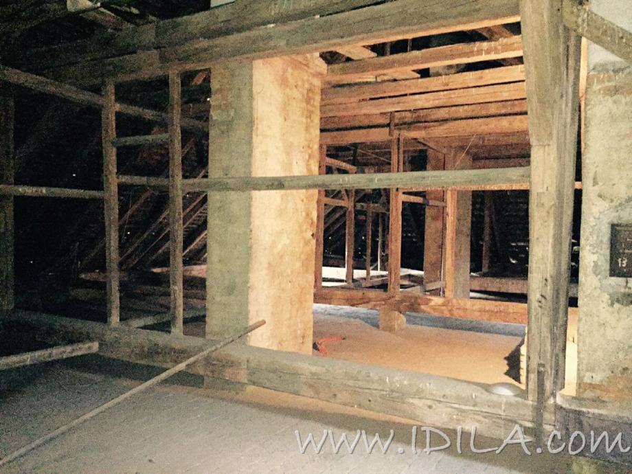 nekaj strešnimi tramovi in dimniki) in ima dve vgrajeni okni, s pogledom na sever in jug. Na podstrešju se že