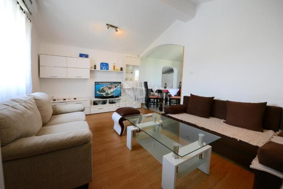 Ta samostojna hiša s tremi apartmaji se nahaja na mirnem mestu 4 km od centra mesta in prvih plaž. Hiša se nahaja na zemljišču velikosti 660 m2 in meri 163 m2. Hiša se razprostira na dveh etažah. V pritličju hiše se nahaja stanovanje, sestavljeno iz predsobe, kuhinje z jedilnico, dnevne sobe, kopalnice ter ene spalnice in predsobe, ki se lahko uporablja kot dodatna soba. V nadaljevanju stanovanja se nahaja prostorna garaža. V prvem nadstropju hiše se nahaja stanovanje z enako vsebino in kvadraturo kot stanovanje v pritličju ter še ena garsonjera, ki jo sestavljajo kopalnica, kuhinja, jedilnica in dnevna soba. Skozi celotno nadstropje se razteza pokrita terasa s pogledom na morje in zelenje. Velik potencial te nepremičnine je veliko dvorišče z možnostjo izgradnje bazena ali pa obstaja tudi idejna rešitev za gradnjo še ene hiše 240 m2 neto bivalne površine.