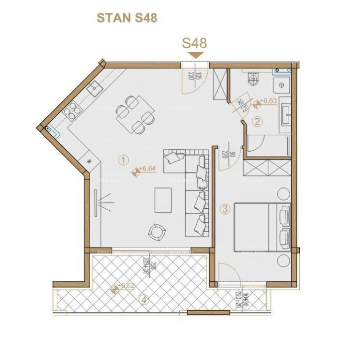 Nahaja se v 2. nadstropju stavbe v LUXE ZELENI CONI. Sestoji iz dnevne sobe s kuhinjo in jedilnico, kopalnice, spalnice in lože.