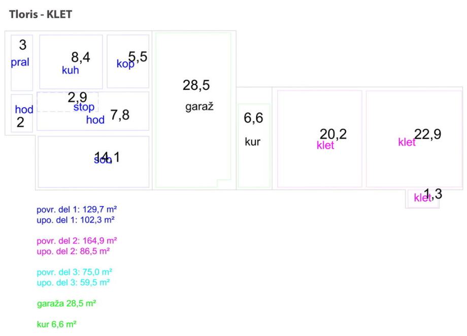 - del 4: 28,5 m2 (dejanska raba garaža)