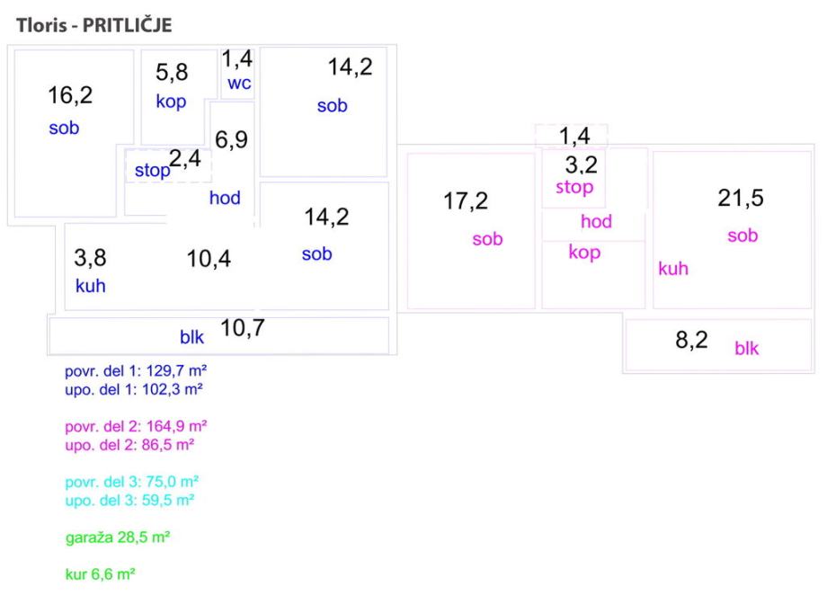 - del 3: 75 m2 (dejanska raba stanovanje)