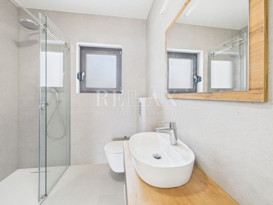 Stanovanje je klimatizirano z invertersko klimatsko napravo, ki zagotavlja prijetno temperaturo skozi vse leto. Kopalnica je opremljena s sodobno sanitarno opremo, tuš kabino in priključkom za pralni stroj.