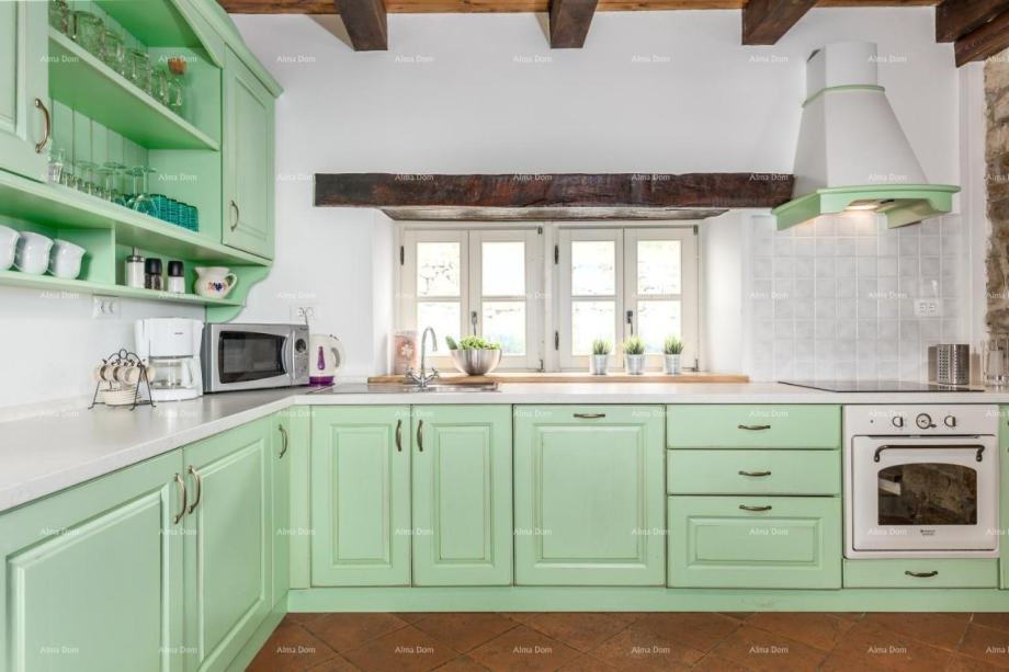 Na prodaj je čudovita kamnita vila v srcu Istre, površine 300 m², z zemljiščem v velikosti 700 m². Vila se popolnoma zlije z okolico in ima lepo urejen in ograjen vrt, ki zagotavlja zasebnost in udobje.