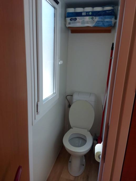 Hiška se trenutno nahaja v kampu Straško na otoku Pagu, ima vse priklope (voda, elektrika, odtok), vendar jo je potrebno odstraniti iz kampa – primerna za postavitev kjerkoli drugje (na parceli, vikendu, vrtu ipd.).