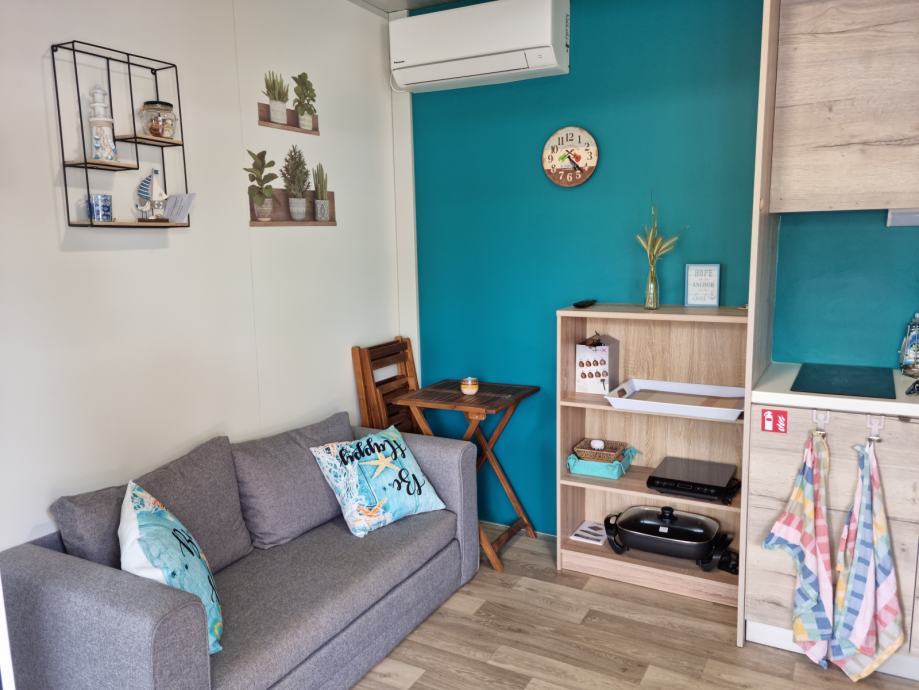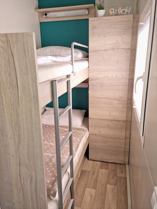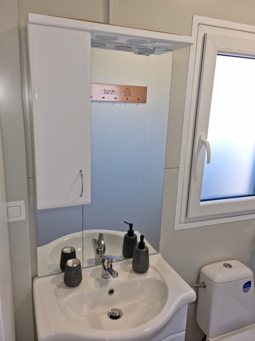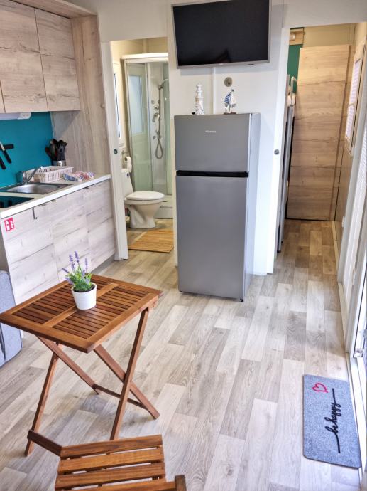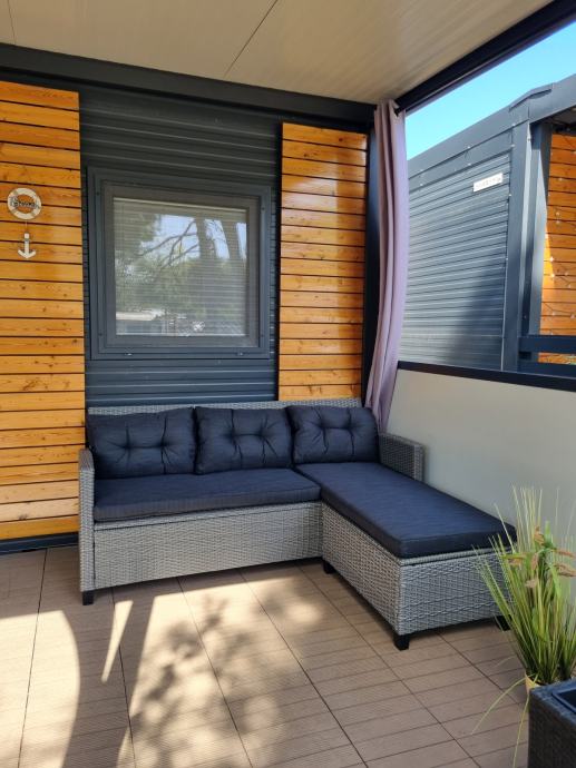 Prodaja se mobilna hiška Hosekra (model Eko), letnik 2021, v urejenem kampu Dalmacija v mestu Privlaka, od morja oddaljena le 70m. Dimenzije hiše so 8x3, notranja površina 24 m2, terasa 23 m2. Sestavljena iz otroške sobe, spalnice, kopalnice z WC-jem ter osrednjega dnevnega prostora s kuhinjo in jedilnico. Parkirišče neposredno ob hiški. Konstrukcija ter PVC okna ter vrata so še v garanciji.