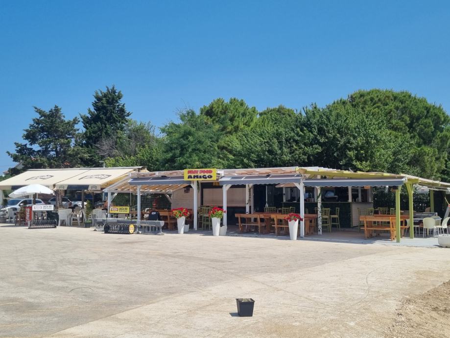 Hiška se nahaja na najboljši mikrolokaciji v neposredni bližini obale, s pogledom na morje. Znotraj in zunaj je popolnoma opremljena in kot takšna se tudi prodaja. Hiška je zasenčena z drevesi, terasa je komplet pokrita z nadstreškom, delno ograjena z alu panelno ograjo, tlak terase predstavljajo WPC plošče. Usmerjenost terase je J-JV, v času največje dnevne vročine je hiška že v senci bližnjega borovca. Hiška je opremljena z avtomatsko klimatsko napravo, hladilnikom z zamrzovalnim delom in bojlerjem. Vse naprave v hiški delujejo na elektriko. S hiško se prodaja tudi ostala manjša oprema in naprave: kuhinjski element na terasi, električni žar, indukcijski kuhalnik, sesalec, fen...itd. Kef je bila zunanja kotna garnitura kuplena lani, se vse fotografije ne ujemajo z dejanskim stanjem (garnitura je sedaj na levi strani, kuhinja na desni).