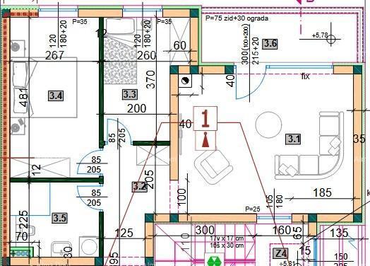 Stanovanje površine 60 m2 obsega 2 spalnici, kombiniran dnevni prostor s kuhinjo, kopalnico in teraso.