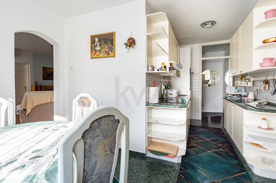 Parket v vseh bivalnih prostorih (pobrušen in polakiran), keramika v kopalnici, kuhinji z jedilnico ter hodniku
