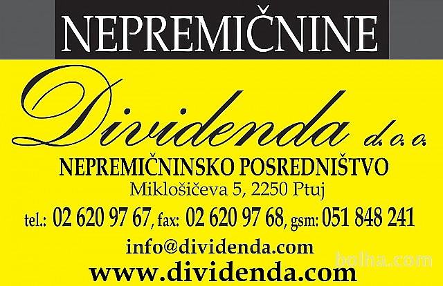 HIŠE, STANOVANJA, POSLOVNE PROSTORE, RAZNE KMETIJE IN GOZDOVE IŠČEMO ZA POSREDOVANJE V PRODAJI ( V UPRAVNI ENOTI PTUJ ). ČE STE LASTNIK NEPREMIČNIN, KI JIH ŽELITE PRODATI, POKLIČITE NAS NA 051 848 241 IN POISKALI BOMO REŠITEV ZA VAS! SLIKA JE SIMBOLIČNA. http://www.dividenda.com/