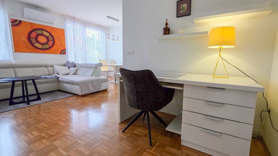 v celoti opremljeno (kuhinja, jedilnica, dnevna soba, delovni kotiček, predsoba, kopalnica, spalnica, balkon)