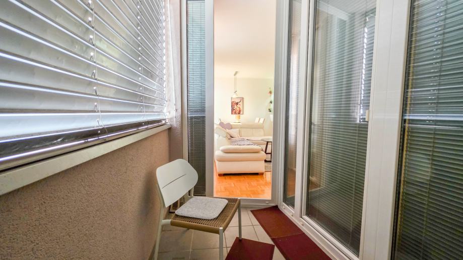 velika okna z zunanjimi in notranjimi žaluzijami ter alu žaluzijami na balkonu in zavese