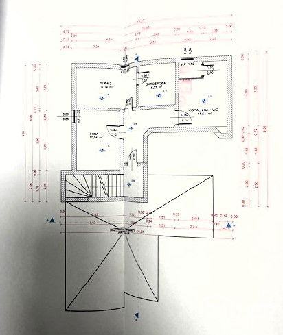 V pritličju vas očara prijeten pretok prostorov: odprt dnevno-bivalni prostor s kuhinjo in jedilnico, svetla dnevna soba, spalnica ter ločen WC. Razporeditev je premišljena in izjemno funkcionalna, idealna za vsakodnevno družinsko življenje ali udobno bivanje para.