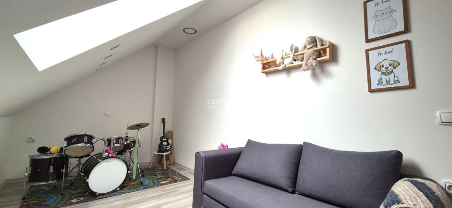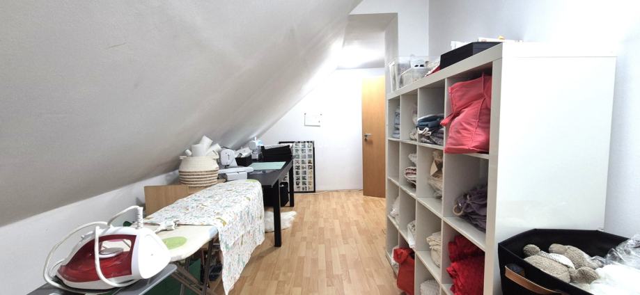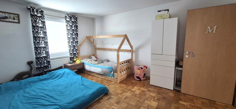 Nadstropje: spalnica, večja otroška soba, dve manjši sobi, izhod na pokrito teraso (21,5 m2)