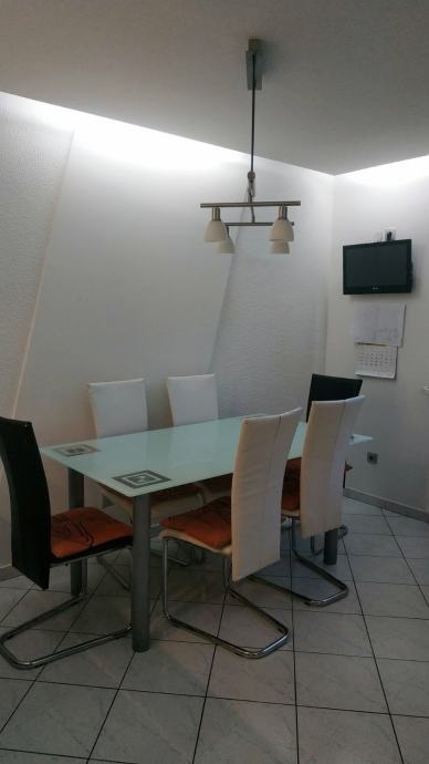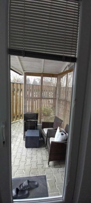 Stanovanje je v celoti opremljeno, sveže prebeljeno in čisto. Ima zasebni vhod čez atrij/teraso, kar je zelo priročno in večji kletni prostor.