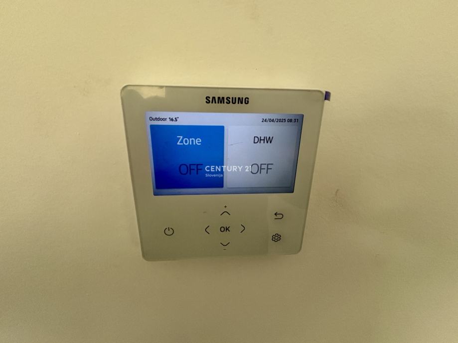 Stanovanje ima vgrajeno in zagnano toplotno črpalko zrak/voda znamke Samsung, vgrajene so vse vtičnice in stikala, zaključena so pleskarska dela. V vseh bivalnih prostorih so nameščeni lokalni rekuperatorji, pripravljene so predinštalacije za omrežne povezave in klimatske naprave.