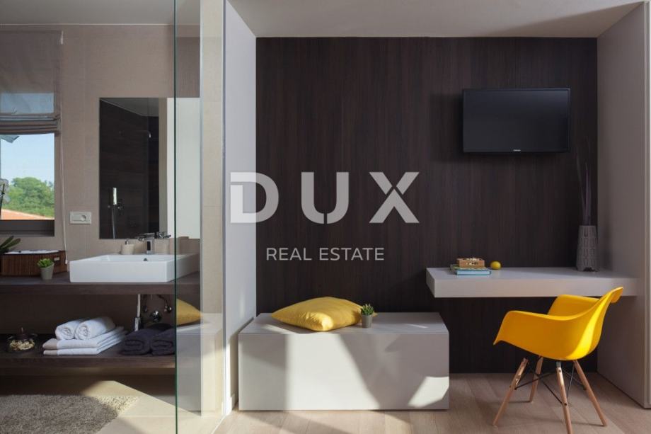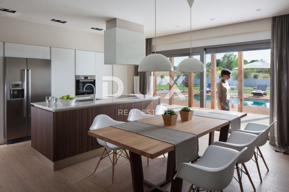 Ta čudovita vila se nahaja v majhni istrski vasici blizu Labina. Labin se nahaja na severozahodnem delu istrskega polotoka. Od Rabca je oddaljena le 4 km. Ekskluzivna vila v velikosti 230 m2 je sestavljena iz prostorne, moderne kuhinje z jedilnico, dnevne sobe, kar štirih spalnic z lastno kopalnico, kar zagotavlja absolutno zasebnost. Dnevna soba in kuhinja sta ločeni s steklenimi stenami od urejenega dvorišča. To zagotavlja svetlobo skozi ves dan. Kuhinja in dnevna soba se odpirata na pokrito teraso, kjer je prostor za druženje, bazen in terasa za sončenje. Vila ima tudi prostor s savno, jacuzzijem in otroško igralnico. Vsekakor edinstvena in posebna, ta vila je eden najlepših primerov kombinacije moderne in tradicionalne arhitekture, z izbranimi in dostojno urejenimi elementi industrijskega oblikovanja. Moderna, elegantna in z neverjetno količino dnevne svetlobe, ki jo poudarja koncept odprtega prostora, ta lepotica ponuja razkošno in udobno bivanje za vsakogar. Spoštovane stranke, agencijska provizija se obračunava v skladu s Splošnimi pogoji poslovanja: www.dux-nekretnine.hr/opci-uvjeti-poslovanja
