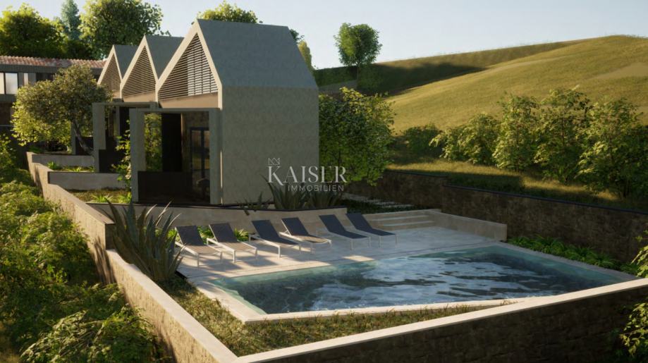 Kaiser Immobilien predstavlja edinstveno priložnost nedaleč od znane turistične destinacije. Zemljišče se nahaja na mirni lokaciji v bližini mesta Labin. Labin je znan po svoji bogati zgodovini, kulturnih znamenitostih in bližini prelepih istrskih plaž. Ker je zemljišče v bližini morja, omogoča enostaven dostop do plaž in možnost uživanja v različnih morskih aktivnostih. S kvadraturo 435 m2 je zemljišče dovolj prostorno za gradnjo družinske hiše, z možnostjo modernega dvorišča. Mirna soseska dodatno prispeva h kvaliteti življenja na tem zemljišču. Pomirjujoče okolje vam omogoča sprostitev in uživanje v zasebnosti, medtem ko je bližina mesta Labin primerna za dostop do vseh potrebnih dobrin. Idejni projekt je namenjen vili. V kletni etaži je vila sestavljena iz prostora za druženje z wellnessom in sanitarije. Stopnišče vodi v pritličje. Pritličje je namenjeno odprtemu druženju s kuhinjo, jedilnico in dnevno sobo. Zagotavlja tudi shrambo in kopalnico. V prvem nadstropju so tri spalnice z dvema kopalnicama. Glavna spalnica ima lastno kopalnico in izhod na balkon, ostali dve sobi pa si delita skupno kopalnico in balkon. Vila ima sodoben dizajn in zelo dobro izkoriščen prostor, da bo vaše življenje v njej razkošno in preprosto. Nepremičnina bo po projektu predvidevala dve parkirni mesti in bazen prijetne kvadrature 23 m2 s pripadajočim prostorom za sončenje. Skupna kvadratura zemljišča je 435m2, na zemljišču se nahaja stara hiša, z idejnim projektom je predvidena rekonstrukcija obstoječe hiše vile z bazenom. Od Občine je potrebno odkupiti še 107m2, za kar obstaja možnost odkupa. Ta del bi torej imel skupno 542 m2, kar je dovolj za izvedbo idejnega projekta. Če vas zanima čista rekonstrukcija obstoječega objekta, ni potreben najem dodatnega zemljišča. V sklopu nepremičnine je naprodaj dodatno zemljišče z idejnim projektom. Zemljišče obsega 500 m2 in je pretežno ravno. S terena je pogled na morje. Na podlagi idejne zasnove je na tem zemljišču predviden objekt s tremi stanovanji in bazenom, razporejen v pritličju in nadstropju. Apartmaji imajo skupno kvadraturo 45 m2 in imajo lastno teraso. Vsako stanovanje bi imelo svoje parkirno mesto. Bazen je namenjen skupni uporabi. Za več informacij kontaktirajte agenta.