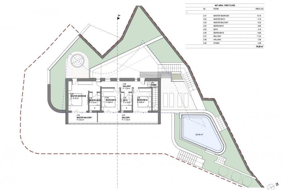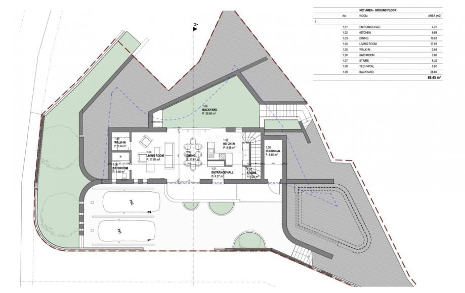 Kaiser Immobilien predstavlja edinstveno priložnost nedaleč od znane turistične destinacije. Zemljišče se nahaja na mirnem mestu v bližini mesta Labin. Labin je znan po svoji bogati zgodovini, kulturnih znamenitostih in bližini prelepih istrskih plaž. Ker je zemljišče v bližini morja, omogoča enostaven dostop do plaž in možnost uživanja v različnih morskih aktivnostih. S kvadraturo 505 m2 je zemljišče dovolj prostorno za gradnjo družinske hiše, z možnostjo modernega dvorišča. Mirna soseska dodatno prispeva h kvaliteti življenja na tem zemljišču. Pomirjujoče okolje vam omogoča sprostitev in uživanje v zasebnosti, medtem ko je bližina mesta Labin primerna za dostop do vseh potrebnih vsebin. Idejni projekt je namenjen vili. V kletni etaži je vila sestavljena iz prostora za druženje z wellnessom in sanitarije. Stopnišče vodi v pritličje. Pritličje je namenjeno odprtemu druženju s kuhinjo, jedilnico in dnevno sobo. Zagotavlja tudi shrambo in kopalnico. V prvem nadstropju so tri spalnice z dvema kopalnicama. Glavna spalnica ima lastno kopalnico in izhod na balkon, ostali dve sobi pa si delita skupno kopalnico in balkon. Vila ima sodoben dizajn in zelo dobro izkoriščen prostor, da bo vaše življenje v njej razkošno in preprosto. Nepremičnina bo po projektu predvidevala dve parkirni mesti in bazen prijetne kvadrature 23 m2 s pripadajočim prostorom za sončenje. Za več informacij kontaktirajte agenta.