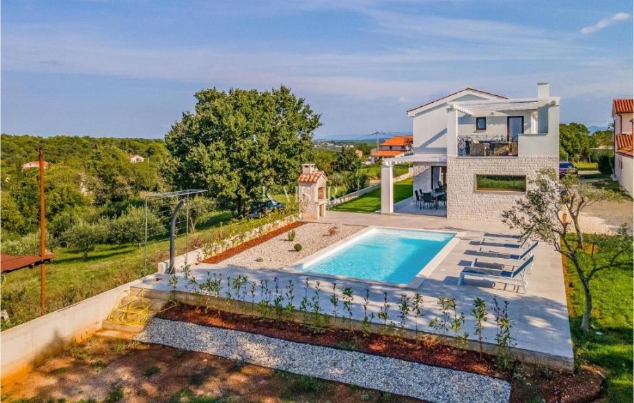 Kaiser Immobilien predstavlja edinstveno priložnost za nakup novogradnje z bazenom na odlični lokaciji. Nepremičnina obsega 130 m2 bivalne površine na zemljišču s skupno kvadraturo 1.100 m2. Bivalni prostor je namenjen prostornemu odprtemu prostoru, ki je namenjen kuhinji z jedilnico in dnevno sobo. Prostor je od pokrite terase ločen s steklenimi stenami. Sodoben dizajn in odlična izraba prostora vam omogočata udobno bivanje ali hitro povrnitev vaše naložbe. Ponuja dve spalnici s pripadajočima kopalnicama in dodatno stranišče. V prvem nadstropju je tudi terasa, ki ponuja jacuzzi in prostor za druženje na prostem. Za ogrevanje in hlajenje skrbi klimatska naprava, nudi pa tudi talno ogrevanje. Prostoren vrt s skupno kvadraturo 1.100 m2 ponuja parkirna mesta za več avtomobilov, urejeno zelenico z namakanjem, kamin, sončno teraso in bazen. Nepremičnina je odlična priložnost za nakup moderne hiše v bližini morja. Prodaja se opremljeno in pripravljeno za vselitev. Do prvih plaž in morja je le deset minut lahke vožnje. Mesto Labin je oddaljeno 15 minut vožnje, medtem ko je do Pule 30 minut vožnje. Hitra povezava z večjimi mesti in življenjskimi vsebinami, a hkrati mirna soseska in veliko zasebnosti so eni glavnih atributov te nepremičnine. Za več informacij kontaktirajte agenta. Ana Beović ana@kaiser-immobilien.hr +385 91 618 3332