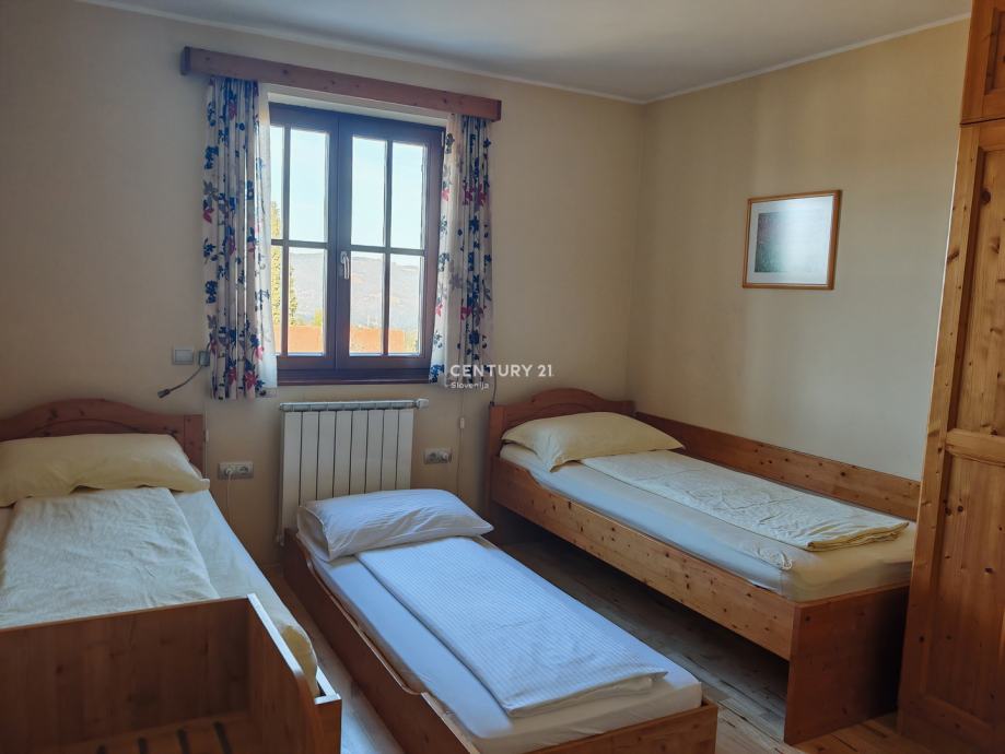 2 ločeni spalnici ena zakonska postelja in dve enojni (vsaka spalnica ima še eno izvlečno posteljo