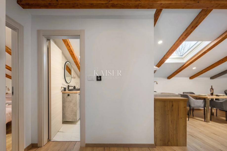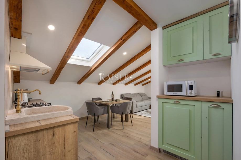 Nepremičninska agencija Kaiser Immobilien iz Opatije daje na trg lepo opremljeno stanovanje v kraju Čavle, blizu Reke, površine 47 m². Apartma se nahaja v prvem nadstropju in je sestavljen iz ene spalnice, dnevne sobe s kuhinjo, kopalnice in balkona. Stanovanje je v celoti opremljeno in opremljeno z vrhunskimi kuhinjskimi aparati (kuhalna plošča, pečica, hladilnik, pomivalni stroj) in aparati, vključno s klimatsko napravo. Stanovanje je idealno za pare, samske ali manjše družine, odlikuje pa ga mirno in zeleno okolje. Bližina Reke omogoča odlično povezavo s središčem mesta. Posredniško plačilo za najemnika je 1 mesečna najemnina + DDV. Plačilo za posredovanje zajema vse storitve v zvezi z najemom in se zaračuna ob sklenitvi prvega pravnega posla. Za podrobnejše informacije se obrnite na: Toni Knežević Tel: +385 91 5766 628 E-pošta: toni@kaiser-immobilien.hr
