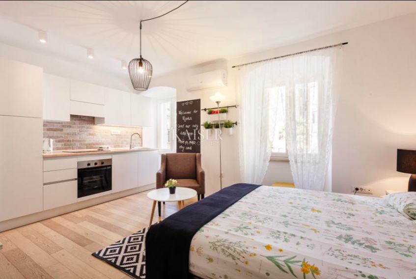 Kaiser Immobilien daje na trg 48 m2 veliko stanovanje v središču mesta. Stanovanje se nahaja v stanovanjski stavbi v 3. nadstropju in je sestavljeno iz spalnice, kopalnice, kuhinje, dnevne sobe in hodnika. Odlična pozicija le nekaj korakov od strogega centra Reke, Korza. V bližini je vse kar potrebujete, trgovina, banka, javni prevoz, cerkev, vrtec, šola. Cena vključuje čiščenje z menjavo posteljnine in wi-fi flat internet. Apartma je idealen za eno osebo ali par. Za več vprašanj kontaktirajte agenta.