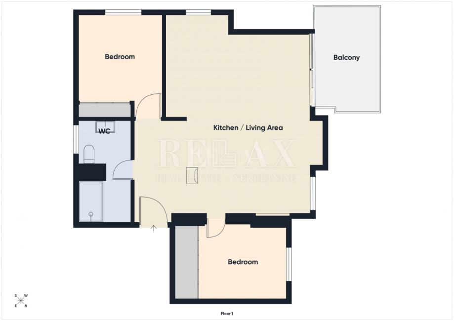 Notranja razporeditev obsega hodnik, prostorno dnevno sobo z jedilnico in kuhinjo v odprtem konceptu, dve spalnici, kopalnico in pokrito teraso. Stanovanje je opremljeno z vrhunskimi materiali in pohištvom priznanih proizvajalcev: italijanska kuhinja Scavolini, trosed iz brušenega usnja Chateau Dax Rialto ter talne obloge iz luksuznih gres ploščic Roberto Cavalli. Ogrevanje je urejeno s toplotno črpalko Daikin Altherma z vgrajenim talnim gretjem in dodatnimi ventilatorskimi konvektorji, medtem ko klima naprava in vgrajena LED razsvetljava še dodatno prispevata k visokemu bivalnemu udobju. Stanovanje ima tudi plinski kamin s steklenimi dekorativnimi kamenčki in oblogo iz kamna Quarz Nero Tormalina, ki se upravlja z daljincem. Vsa okna so opremljena z vgrajenimi komarniki.